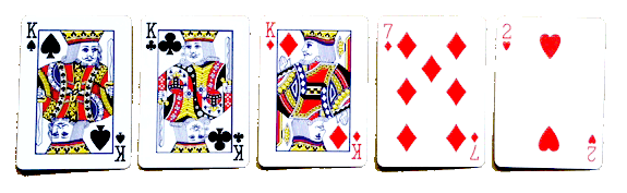 Main pleine (Full) : une main de trois cartes de la même valeur (brelan) et d’une paire