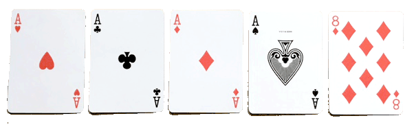 Carré (Quads/Four of a Kind): une main de quatre cartes de la même valeur