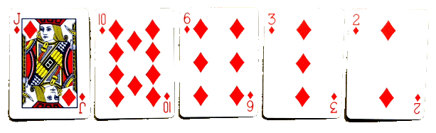 * Deux cartes de la même couleur sont deux cartes de la même « sorte ». Une carte de carreau n’est donc pas de la même couleur qu’une carte de cœur même si toutes les deux sont rouges.